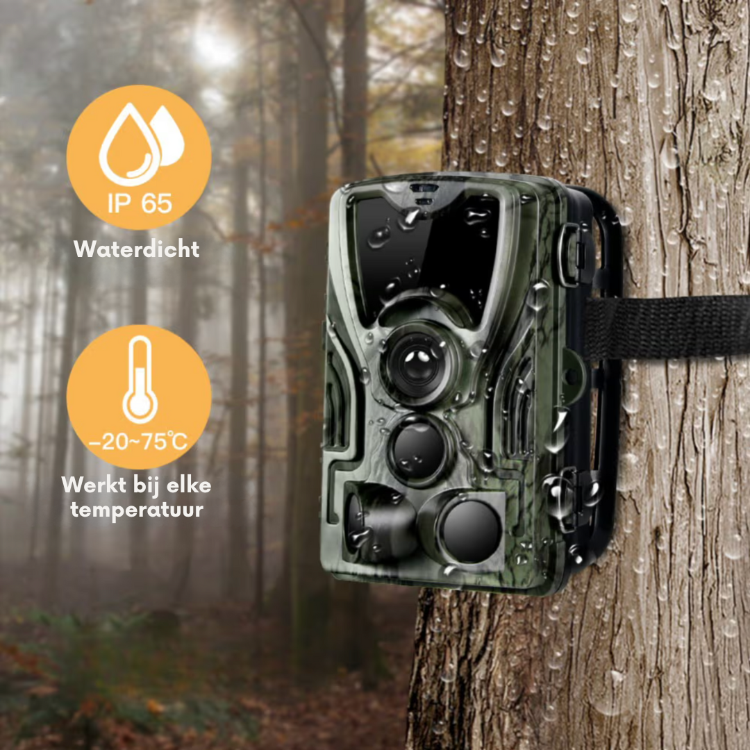 De wildcamera met bedieningsscherm reageert automatisch op beweging en legt beelden vast in slechts 0,3 seconden. Je kunt de instellingen eenvoudig aanpassen om het aantal foto’s en video’s te bepalen dat bij elke detectie wordt opgeslagen.